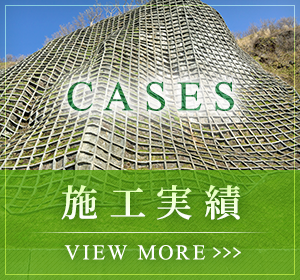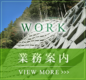 弊社の仕事は法面工事と呼ばれる山間の斜面に対して安定化を施すための工事です。落石を防止したり、土砂崩れを防止したり、地域の安全な環境形成のために欠かせない仕事です。また、法面(斜面)が裸にならないように、草木を植えることもあります。