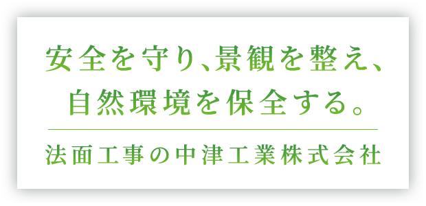 中津工業株式会社は、長野県千曲市・長野市発、隣県など周辺エリアで活動しています。安全第一、品質も第一。法面工事は安心して弊社にお任せください。今後も地域を守り続けます。
